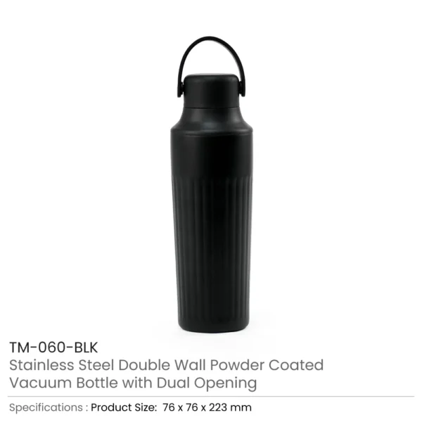 Dual Opening SS Bottles, Double-Wall Insulated Body, Powder Coated, 500ml