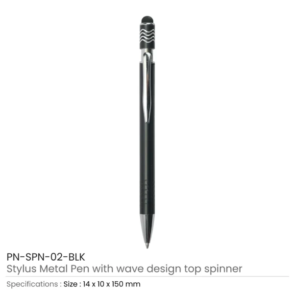 Stylus Metal Pens with Wave Design Top Spinner – Push Button (Blue Ink)